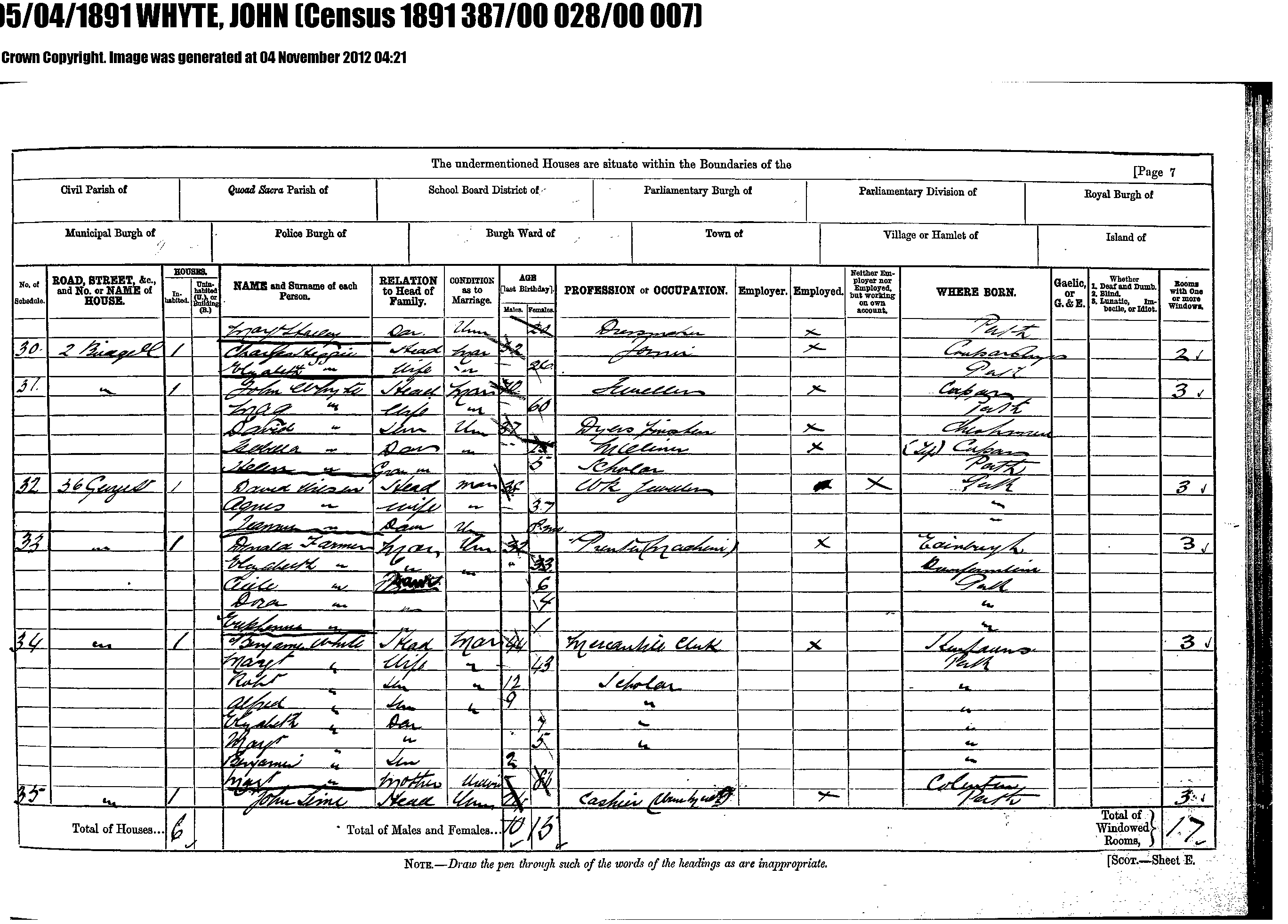 Rd Glasgow and this Perth Census was April 5 1891 !