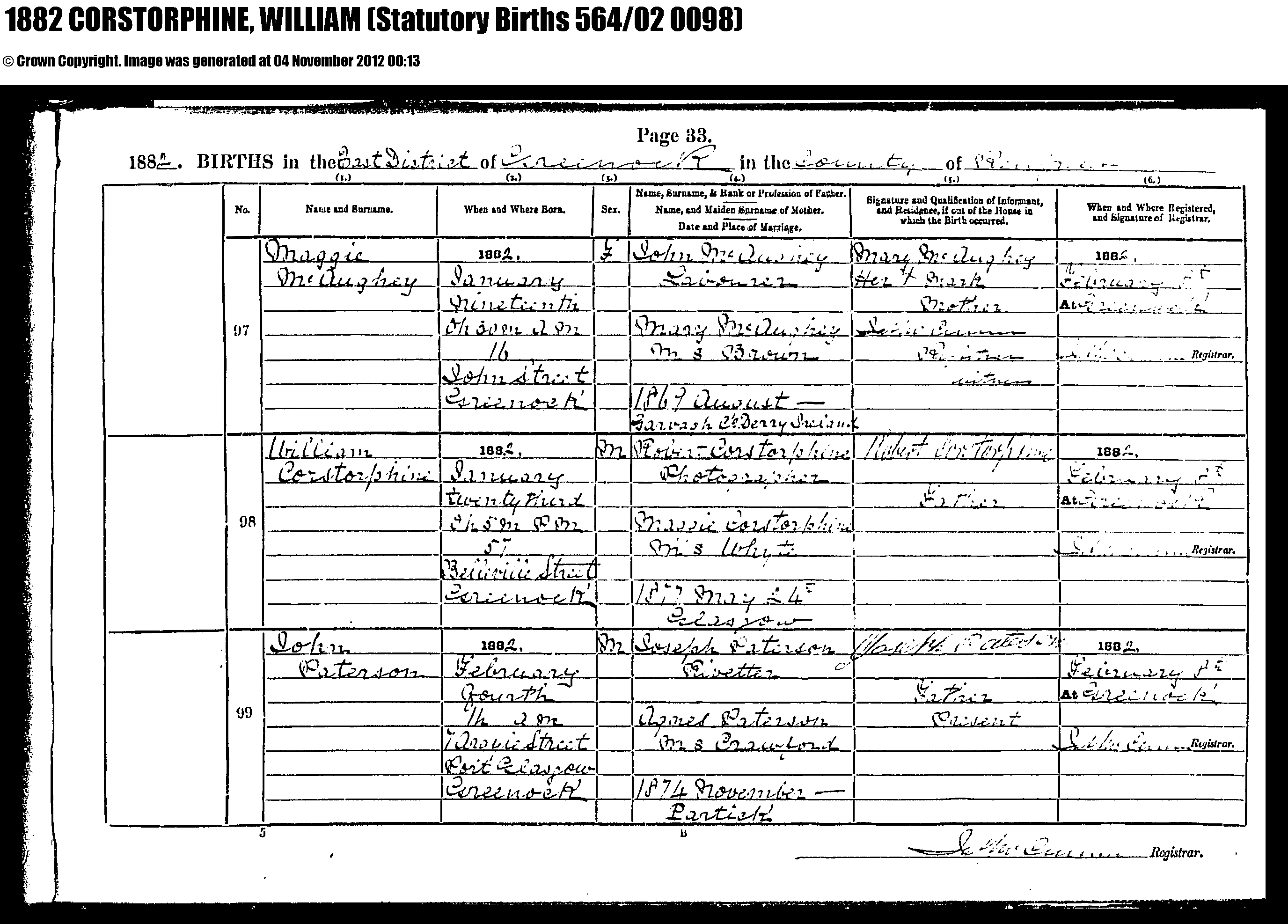 BIRTH William Corstorphine 1882